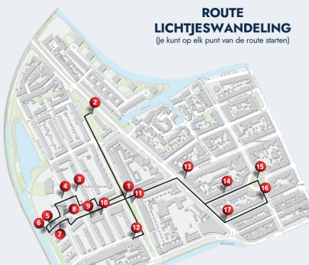 De lichtjeswandeling is op woensdag 11 december van 17.00 tot 19.00. Je kunt op elk punt de route beginnen! Bekijk de flyer voor de route.