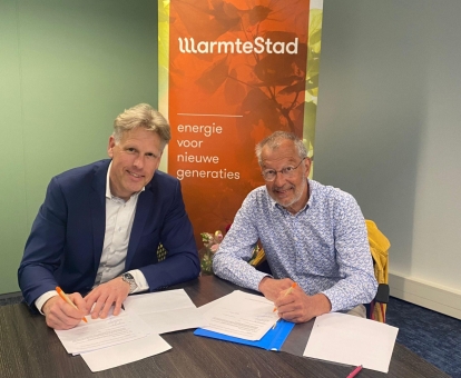 Vve-voorzitter GP de Vries en WarmteStad directeur Dick Takkebos tekenden daarvoor een overeenkomst.