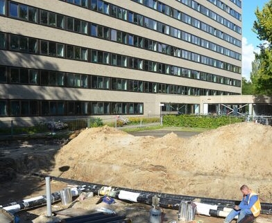 De container met daarin de tijdelijke ketel van het warmtenet langs het fietspark richting Zernike om de kamers warm te houden, is weg. Daarmee is onze hoofdleiding klaar en in gebruik. Studentenflat de Dragant is onlangs aangesloten en op termijn gebeurt dat met veel meer woningen.