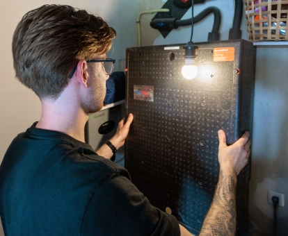De ontluchtingsplek zit vij één van je radiatoren of aan de muur in bijvoorbeeld de berging. Draai met de ontluchtingssleutel aan de ontluchtingsknop. Wacht tot alle lucht uit het systeem is. De lucht is uit het systeem zodra er een straaltje water uit het knopje komt. Draai de ontluchtingskraan dan weer dicht.