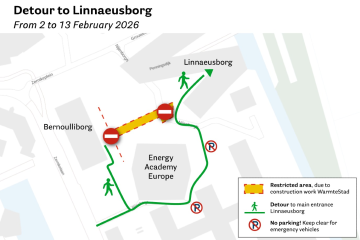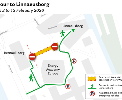 De weg Nijenborgh is tussen 2 en 13 februari afgesloten ter hoogte van de hoofdentree van de Linnaeusborg. Ook het pad tussen de Bernoulliborg en Linnaeusborg is in deze periode afgesloten. Voor voetgangers wordt een tijdelijke omleidingsroute gecreëerd die langs de zuidzijde van de Energy Academy Europe (EAE) loopt. '